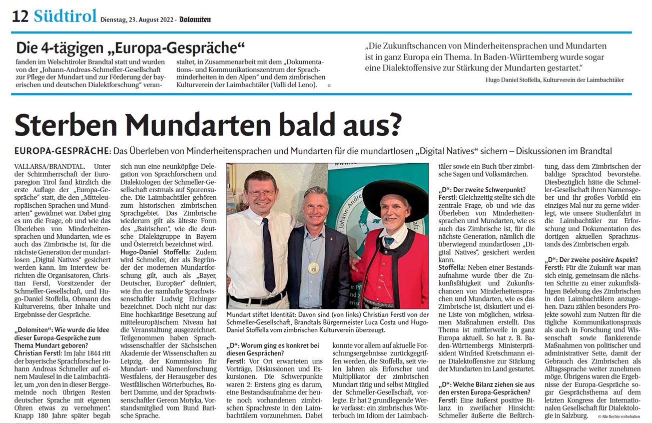 [Symposium "Tracht und Sprache" im Rahmen des 1. Gipfeltreffens der Trachtenverbände im Alpenraum in Pleif im Brandtal]