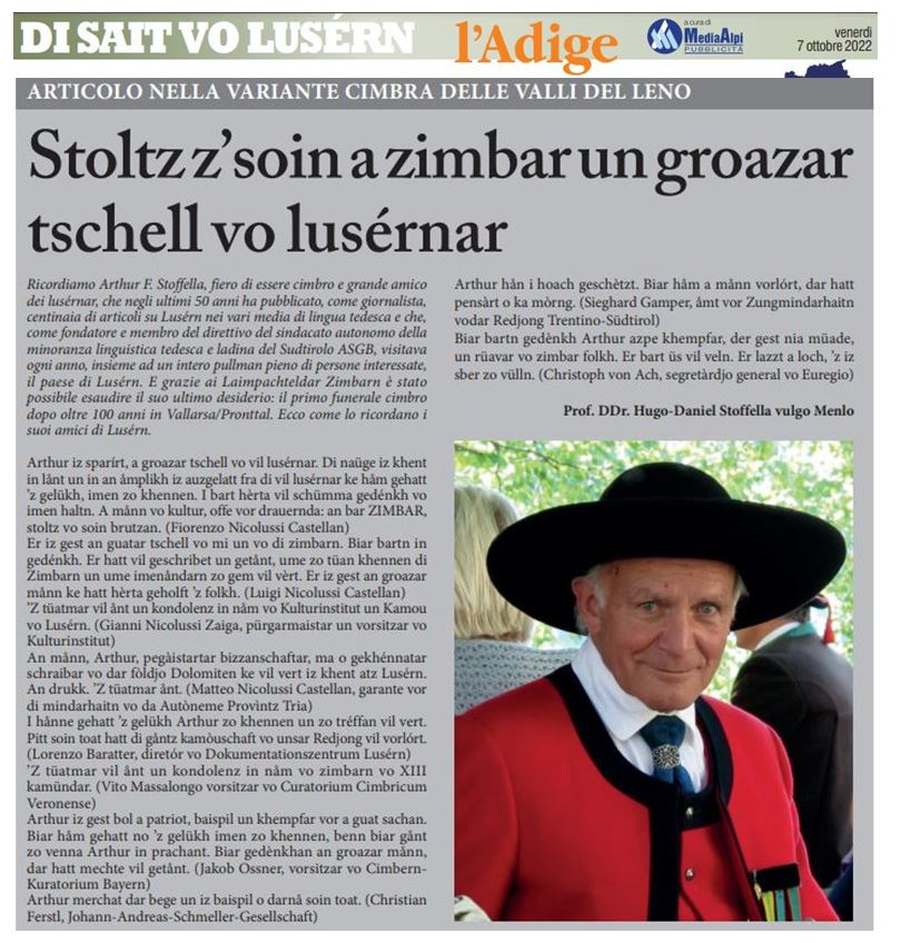 [Symposium "Tracht und Sprache" im Rahmen des 1. Gipfeltreffens der Trachtenverbände im Alpenraum in Pleif im Brandtal (Text in italienischer Sprache)]